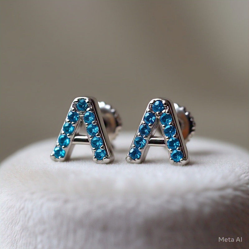 Alphabet A Stud Earrings in 925 Sterling Silver