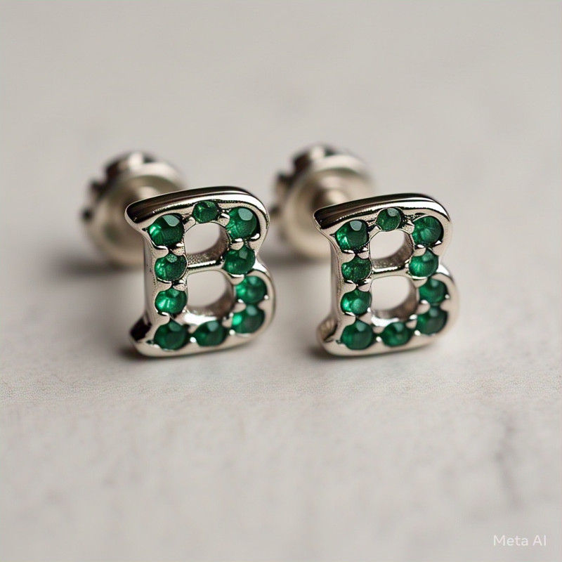 Alphabet B Stud Earrings in 925 Sterling Silver