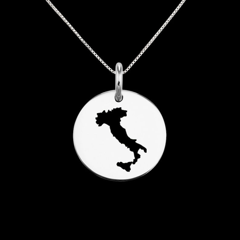 Italy Map Pendant Solid 925 Sterling Silver Pendant.